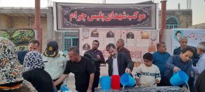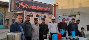موکب بنیادشهید شهرستان چرام با همکاری مسجدامام حسن عسکری وحجت الاسلام شیخ عبدالی وایستگاههای صلواتی درطول مسیر ازمردم پذیرایی میکردند.