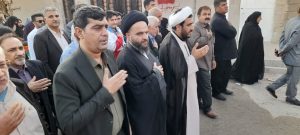 در این اجتماع باشکوه اقشار مختلف مردم و مسئولان باردیگر با الاله های فاطمی با شعارهای این گل پرپر از کجاامده ازسفر کرببلا امده و حسین حسین شعار ماست شهادت افتخار ماست و همچنین شعارهای مرگ بر امریکا و مرگ بر اسرائیل تجدید میثاق نمودند.
